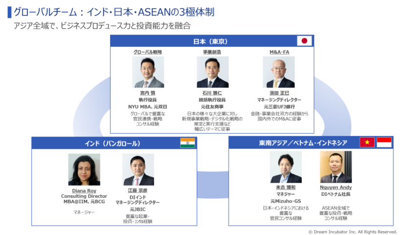 DIは、ASEAN・インド・日本の3極体制のグローバルチームで支援しています。